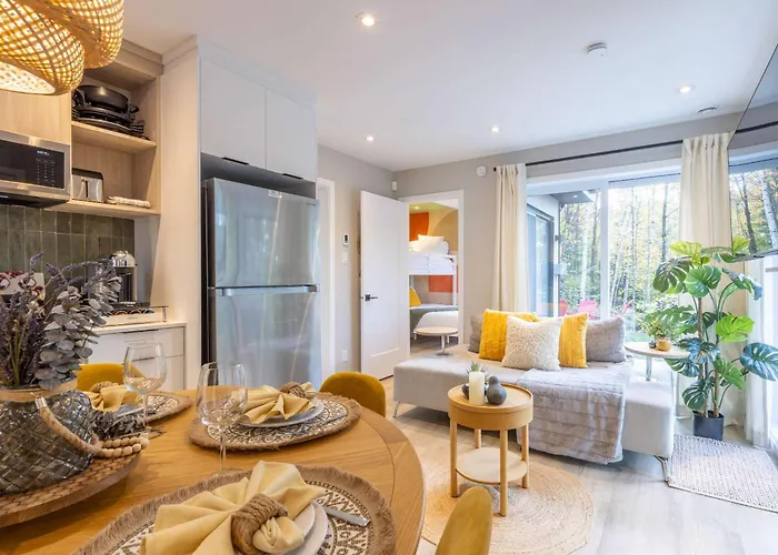 הוילה Brownsburg Mini Chalet Ecohaven - Spa מספקת מקום שהייה עם פארק מים וקורס גולף, ושוכנת במרחק של 4.2 ק"מ על Greek Orthodox Monastery of the Virgin Mary of Consolation. מועדון גולף קרלינג לייק שוכן במרחק של 2.7 ק"מ על מקום השהייה, בזמן שהעיר מונט טרמבלאנט זה כ-44 ק"מ משם.